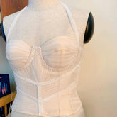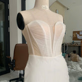 Gọng corset hoặc lớp lót nâng đỡ: We sculpt each gown with precision—using boning, corsetry, inner linings, and thoughtful layering to ensure the perfect balance of comfort and support. Whether it's a flowing A-line, a romantic mermaid, or a timeless ball gown, the structure beneath the surface holds the magic that brings each silhouette to life.